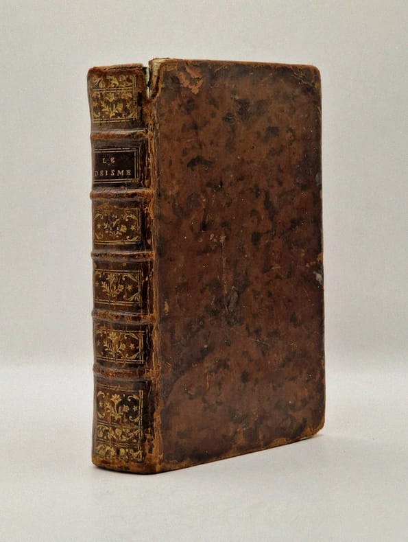 Paris Chez Humblot 1771 Deux tomes en un volume in-12 plein veau raciné, dos à nerfs orné de caissons dorés, pièce de titre en maroquin rouge, tranches marbrées, XII, 285, 261 pp. Coins frottés, manques aux coiffes, travail de vers sur le dernier plat.