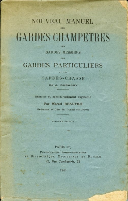 Publications administratives, Paris, 1940. In/8 broché, couverture imprimée, 291 p., 8è édition. Couverture abîmée : manques importants ; dernier feuillet (sans texte) également avec manque et abîmé.