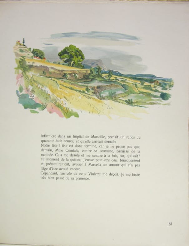 Cercle Lyonnais du Livre, 1939. In folio en feuilles, couverture rempliée sous chemise cartonnée et étui (dos de l’étui en bois avec fenêtre aménagée pour le titre imprimé sur le cartonnage, illustrations : 42 aquarelles de H. Lebasque gravées sur bois par Daragnès, 225 pages.