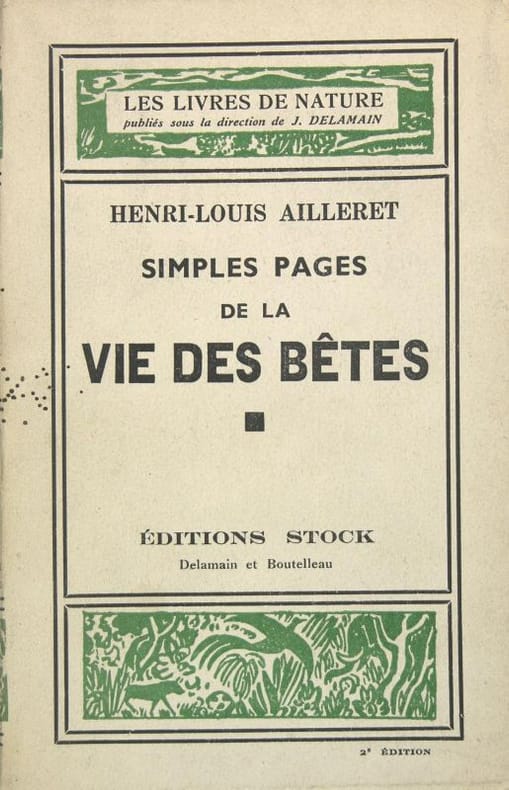 Editions Sotck, collection “Les livres de la nature”, 1945. In/12 broché, couverture illustrée de deux bandeaux, 204 pages. Seconde édition.