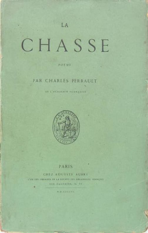 Jolie réédition présentée par Henri Chevreul, soignée comme toutes les productions d'Aubry. Ce poème vif et spirituel offre une peinture des plaisirs et des misères de la chasse. « Il fut composé en une seule soirée pour répondre à un défi » (Thiébaud, Bibliographie de la chasse, 721). Bandeau gravé sur bois représentant une scène cynégétique, tiré en rouge. Tirage à petit nombre sur différents papiers. Bel exemplaire sur papier vergé. Ex-libris anonyme bien gravé mais d’un goût un peu scabreux. Il représente un chasseur accroupi, culotte baissée, voyant avec déplaisir un lièvre lui passer sous le nez. Au dessous, la devise Pas veinard.