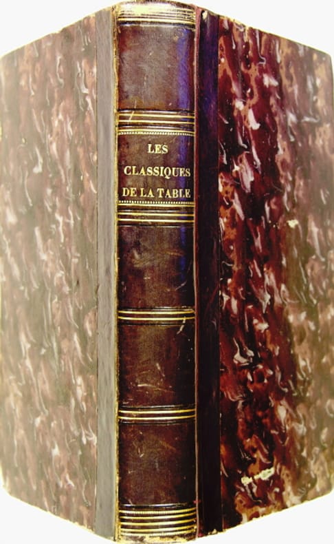 Paris, au dépôt, Dentu - Tresse - Renouard - Mansut - Maison - Amyot 1844 Un volume in-8°, [2] ff. (faux-titre, titre) IV pp. (dédicace) [1] ff. XIII pp. (quelques explications préliminaires) [2] ff. 3-528 pp. Reliure époque en demi-chagrin marron, dos à nerfs orné du titre, de pointillés et de filets dorés, gardes de papier caillouté. (dos légèrement frotté, rousseurs). Textes de BRILLAT-SAVARIN, BERCHOUX, GRIMOD DE LA REYNIERE, COLNET, de CUSSY, J. B. LALANNE, de FONTANES, PARNY, J. ROQUES, A. CARÊME. Ouvrage orné d'un titre illustré d'une vignette, de 9 portraits ( Talleyrand, Jules Janin, Marcel Gaubert, Berchoux, Grimod de la Reynière, Appert, Colnet, Marquis de Cufoy, Carême) et 6 gravures hors texte. Rare.