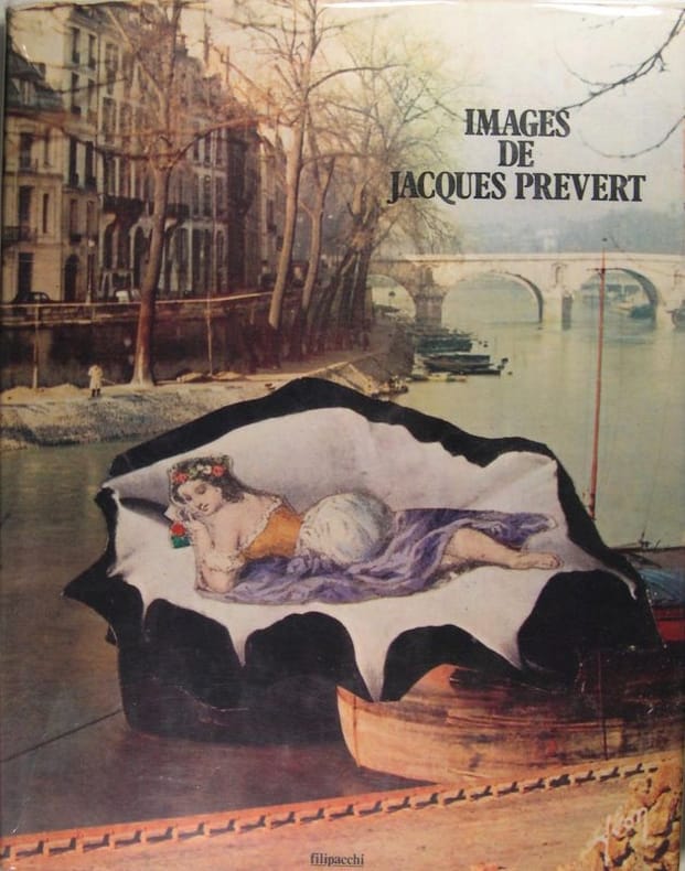 Paris Maeght 1957 In 4 broché couverture illustrée, 46 pages. Texte de René Bertelé sur papier rouge, 19 collages de Prévert reproduits en pleine page. Tirage limité à 1500 exemplaires numérotés. Petite déchirure à la couverture sinon bel exemplaire.