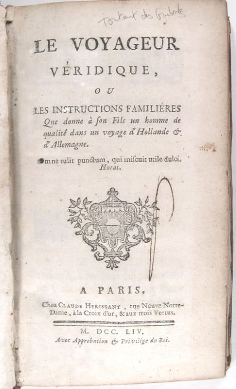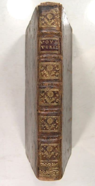 A Paris, chez Claude Herissant, 1754. In/12 reliure plein veau du temps tachetée, dos à nerfs à caissons dorés et pièce de titre rouge, 5 ff., 235 p., 2 ff., 9 tableaux dépliants. Coiffe supérieure manquante, usures aux coins. Querard 1.
