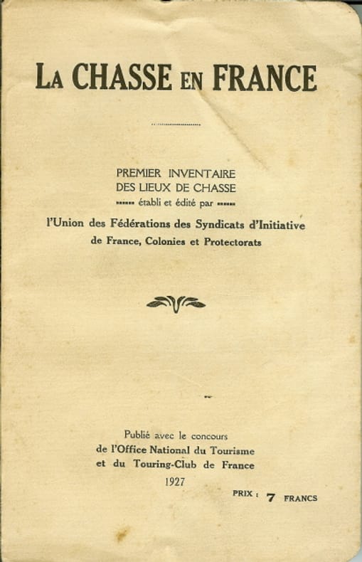 Préface du Comte Clery et avant-propos signé Pierre Audigier (Thibaud, 178). Annotation au crayon, pour chaque département, du nombre d'habitants (H.), du nombre de chasseurs (C.) et du pourcentage habitants/chasseurs. PHOTOS sur DEMANDE. ...................... Photos sur demande ..........................