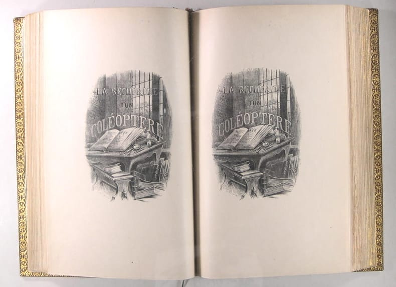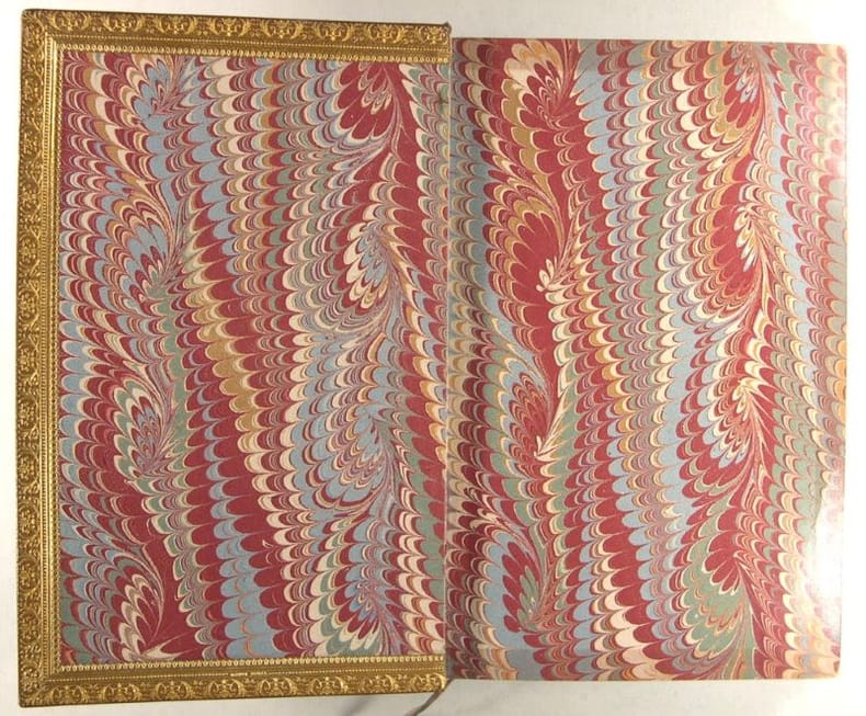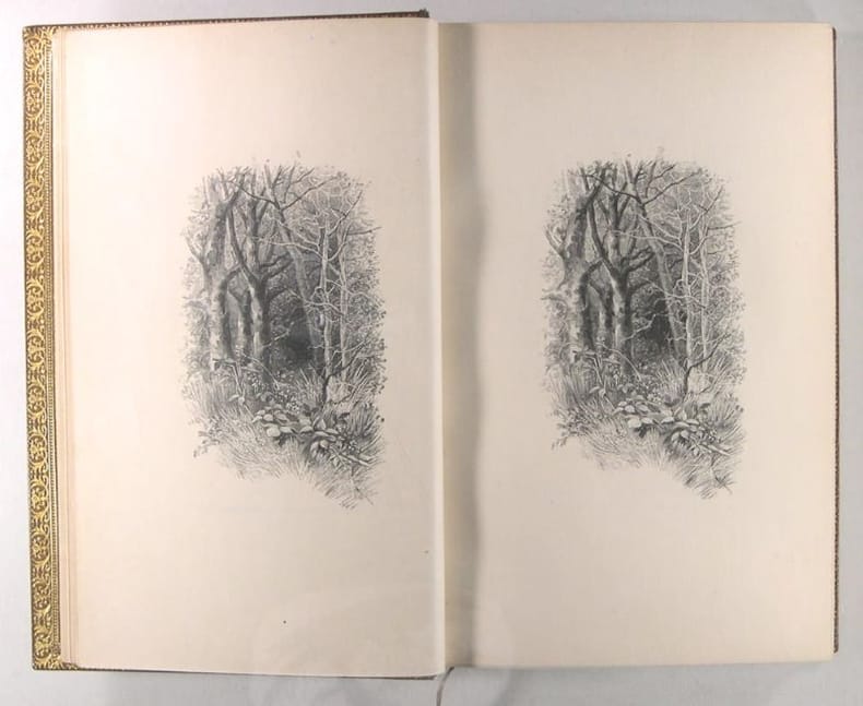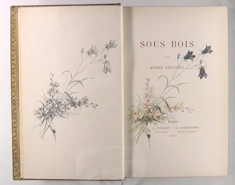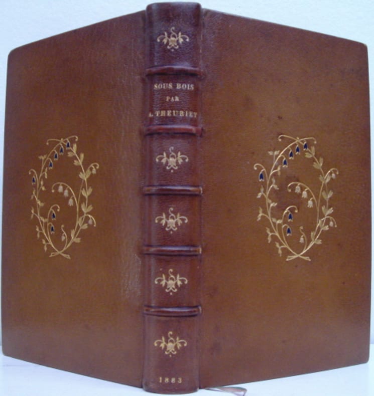 Hector Giacomelli, né à Paris en 1822 et mort à Menton en 1904, aquarelliste, graveur et illustrateur français, connu surtout pour ses peintures d'oiseaux. La reliure, d’un travail très soigné, est très représentative du travail de Michel Marius, avec Les décors floraux délicats qui on fait sa renommée, créant pour chaque livre un nouveau décor , particulièrement adapté pour le présent ouvrage. Monod 10648.