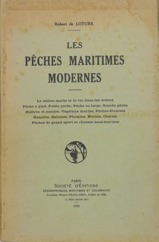 SOCIETE D'EDITIONS GEOGRAPHIQUES, MARITIMES ET COLONIALES. 1946. In-8. Broché. Etat d'usage, 2ème plat abîmé, Coiffe en tête abîmée, Intérieur acceptable. 374 pages - quelques illustrations en noir et blanc dans le texte - petit manque sur le 2ème plat .. . . . Classification Dewey : 799.1-Pêche