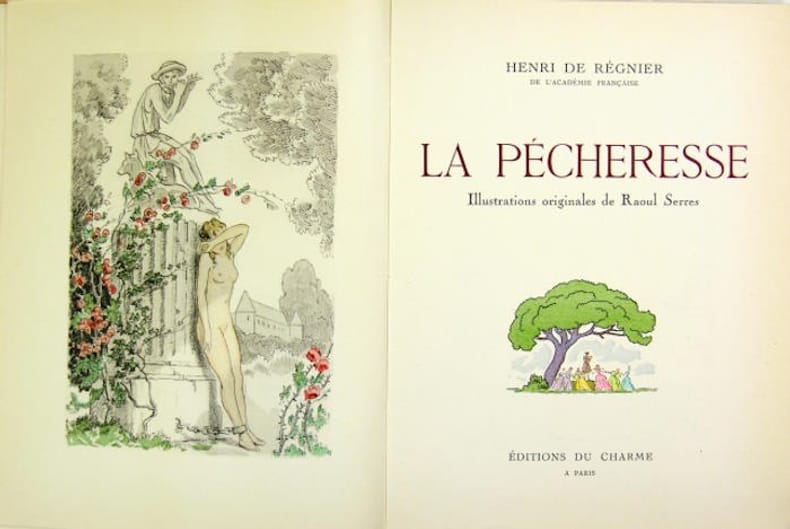 Paris, Éditions du charme, 1941. In-8 broché. L’un des 3000 sur vélin, celui-ci porte le n°486. Illustrations originales de Raoul Serres. "Dans La Pécheresse, Henri de Régnier raconte l’adultère d’une femme mariée, qui cherche à fuir l’ennui et les contraintes sociales, mais découvre que le désir ne la libère pas de sa solitude intérieure." Très bon état.