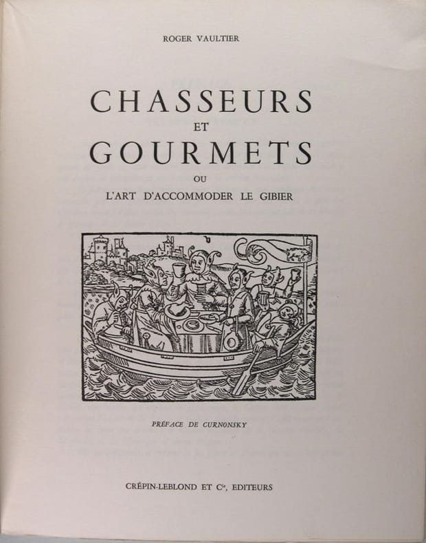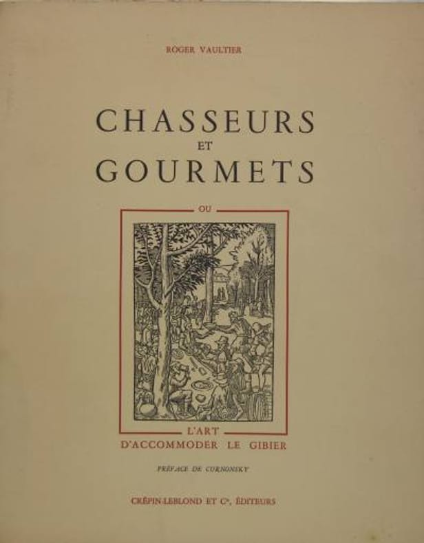 Un livre de recettes précieuses, des plus rares et des plus fines, de gibier à plumes, à poils et venaison ; Sauces ; Fonds et fumets ; Les vins et le gibier. Préface de Curnonski. Mouchon, 1264. Fermeture de la Librairie du 30/12/2025 au 11/01/2026