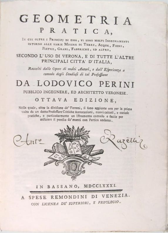 Remondini, Bassano, 1781. In/4, cartonnage d’attente avec vignette sur le premier plat, 160p. Nombreuses gravures sur bois dans le corps de texte, deux gravures sur bois dépliantes hors texte, lettrines ornées. Huitième édition. Ouvrage en Italien.