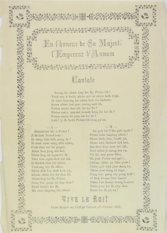 Cantate réalisée à l’occasion de la Visite Royale au collège Cuenot. CANTATE EN VIET.