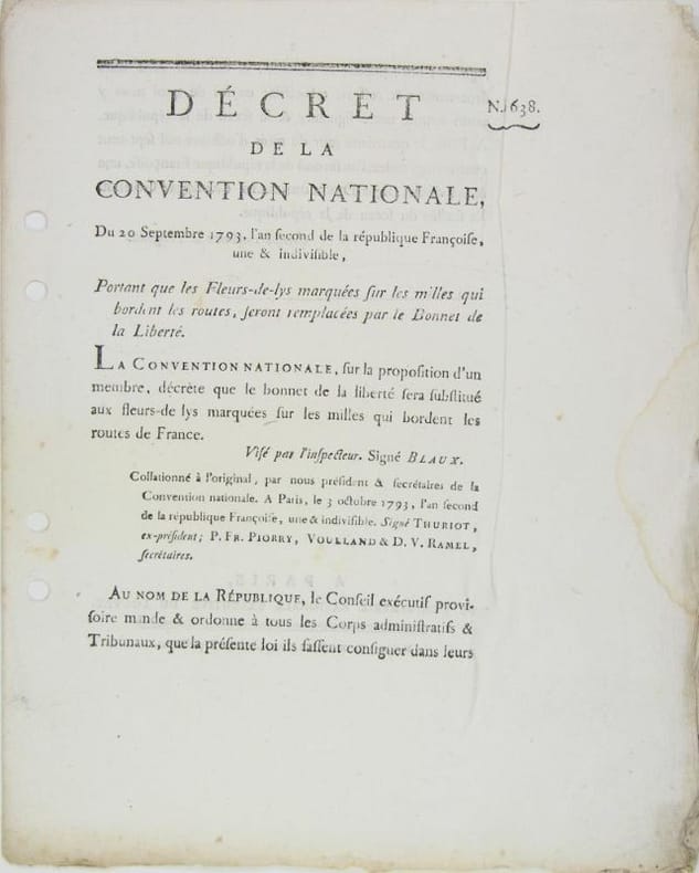 Paris, Imprimerie nationale exécutive du Louvre, 1793. Feuillet double in/4 à grandes marges.