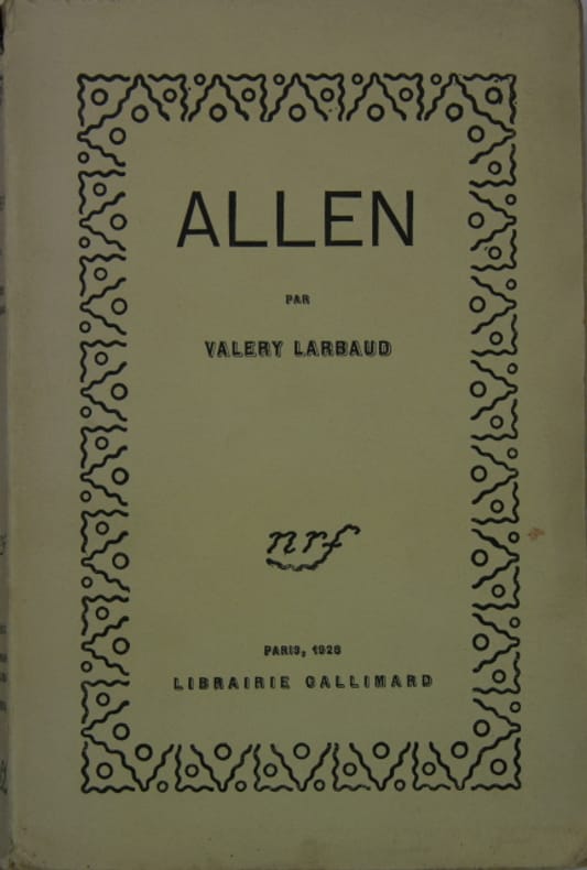 V. Larbaud (1881 - 1957) Enfant unique d'un père pharmacien, propriétaire des sources de Vichy Saint-Yorre, qui décède quand Valéry Larbaud a huit ans, il est élevé par sa mère. Rentier grâce à la fortune familiale, il voyage à grands frais, mène une vie de dandy, fréquentant les stations thermales pour soigner sa santé fragile. Parlant allemand, italien, espagnol et anglais, il introduit en France des auteurs tels Samuel Butler, Walt Whitman et William Faulkner, en les traduisant ou les préfaçant. En 1935, une hémorragie cérébrale le rend hémiplégique et aphasique, le clouant au lit à vie. Il se voit contraint, en 1948, de vendre ses biens et sa bibliothèque de quinze mille volumes à la ville de Vichy dont la médiathèque a conservé le mobilier et la somptueuse collection de livres reliés.