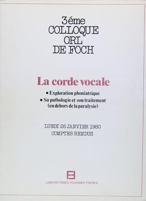 Laboratoires Fournier Frères, 1980. In/4 broché, couverture imprimée, illustrations en noir, 88 pages. Compte rendu de colloque : Exploration phoniatrique - sa pathologie et son traitement (en dehors de la paralysie)