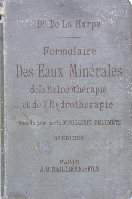 Reliure abîmée : manque sur le dos, taches et épidermures sur les plats.In fine pages de publicités, Introduction du Dr Dujardin-Deaumetz. Véritable guide des de la balnéothérapie, avec la teneur de l’eau, le climat, la description de la ville, l’itinéraire, la composition chimique, physique, et les indications thérapeutique, ....