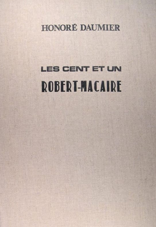 Ensemble complet de ses 2 parties reliées en un volume ainqi que de ses 101 jolies planches lithographiées. ''Caricaturana [Les Cent et un Robert Macaire], la série de cent lithographies consacrée au personnage imaginaire de Robert Macaire, résume à elle seule l’analyse amère et désabusée de Daumier sur ses contemporains. Macaire désigne en effetun affairiste profiteur de toute situation, dénué de tout sens moral. En lui donnant une image par voie de presse, Charles Philipon et Daumier, auteurs respectifs des légendes et des dessins, s’attachent à dénoncer la malhonnêteté de la société du XIXe siècle. Cette entreprise remporte immédiatement un grand succès auprès du public. Outre la publication ordinaire sur les pages du Charivari (1836-1838), l’imprimeur Aubert met en circulation les albums de la série complète des lithographies, ainsi que plusieurs éditions du livre Les Cent et Un Robert Macaire, avec des copies réduites des illustrations de Daumier. Messieurs et Dames! – crie Macaire, interpellant la foule afin de lui vendre des actions aux gains improbables, dans une mise en scène assez pittoresque. Il apparaît très à l’aise, l’œil bandé et revêtu à la manière du bohémien romantique, accompagné dans sa harangue de la grosse caisse du fidèle et dupe Bertrand. Dans les autres planches de la série, Macaire pratique au mieux son art d’escroquerie dans les métiers de la bourgeoisie arriviste: journaliste, notaire, médecin, avocat et même «schismatique», avec le propos farfelu de fonder une nouvelle religion.'' (in Exposition Daumier à la Bibliothèque municipale de Lyon). Carteret III, Le Trésor du bibliophile romantique et moderne, p. 187 - Vicaire VI, Manuel du libraire et de l'amateur de livres du XIXème siècle, 573 - Brivois, Bibliographie des ouvrages illustrés du XIXème siècle, p. 354. Angles élimés. Dos légèrement passé et frotté. Feuillets parfois oxydés. Rousseurs ou tâches claires dans le corps d'ouvrage (davantage prononcées sur quelques feuillets). Infime déchirure en marge d'un feuillet. Du reste, bonne condition.
