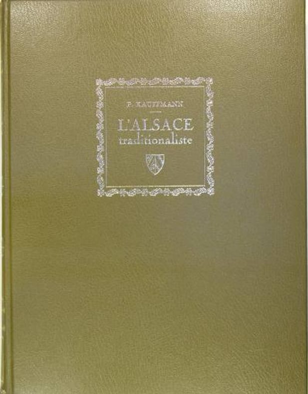 Librairie "Union" Strasbourg 1931 L'ALSACE TRADITIONALISTE. Première partie : types et costumes. Deuxième partie : l'habitation rurale. 30 aquarelles reproduites en couleurs par la "sélechromie", 84 planches de dessins en noir reproduites en fac-similé. Texte explicatif et détaillé par l'auteur. Edité sous le patronage du TOURING-CLUB de France. Préface de M. Henry DEFERT. In-4 sous emboîtage demi-percaline verte sous étui, comprenant : un volume broché de 157 pages, couverture ornée en couleurs 30 planches en couleurs de costumes, à plusieurs personnages 84 planches en noir d'ustensiles et de décors intérieurs et extérieurs. Exemplaire de passe sur pur fil Lafuma. Rare première édition. Trés bel exemplaire.4to under slipcase green half-percalin, including / understanding: a soft-cover volume of 157 pages, decorated cover colors 30 plates colors of costumes, with several characters 84 plates in black of ustensils and interior and external decorations. Specimen on pure wire Lafuma. Nice copy.