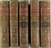 A Paris, chez Moutardier, an X (1802). 5 volumes in/8 en reliure du temps de veau tacheté, dos lisses à fleurons et pièces de titre brique et brune, vol 1 : frontispice, 118 f., 428 p. - vol. 2 : 16 f., 606 p. - vol.3 : 640 p. - vol.4 : 671 p. - vol. 5 : 40 f., 612 p., 2 f. Ouvrages en bon état, hormis de petits trous d’insecte sans gravité.