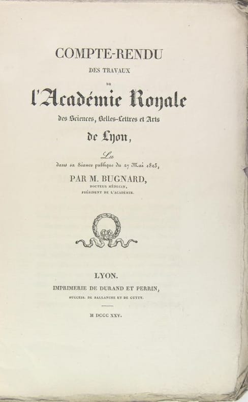 Lyon, , Imprimerie de J.M. Barret, , Lyon, , Imprimerie de J.M. Barret, 1827 ; Plaquette in 8° , broché, sans couverture.