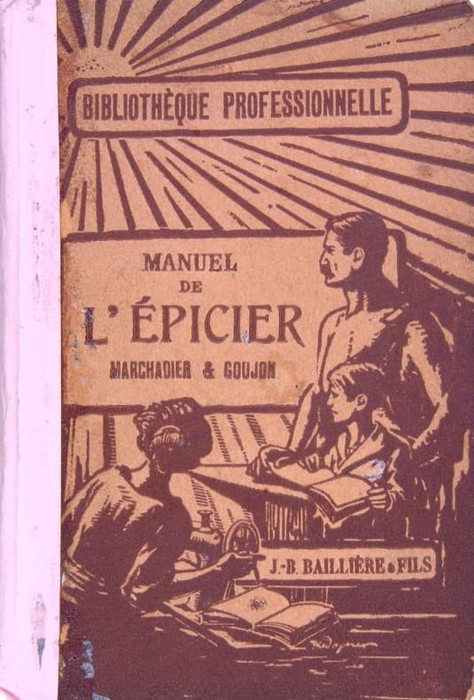 Paris, Baillière, Paris, Baillière1906 ; in-12, percaline jaune de l’éditeur. catalogue sur les gardes, VII pp., 460 pp., 32 pp. de catalogue, 137 figures in-texte.Intéressant guide de l’épicier détaillant les produits, et le matériel nécessaires à ce commerce. Produits alimentaires et conserves, Denrées coloniales, Boissons et spiritueux, Produits servant au blanchiment à l’éclairage et au chauffage, produits d’utilité journalière.Couverture tachée.