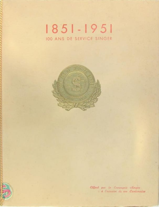 Belle plaquette offerte par la Compagnie Singer à l’occasion de son centenaire : Histoire de la machine à coudre, quelques conseils de couture, rectification des patrons, la coupe, préparation des morceaux, bâtis..., vêtements tailleur, pour enfants, broderies, reprises et raccommodages, élargir ou ajuster une robe, détachage.