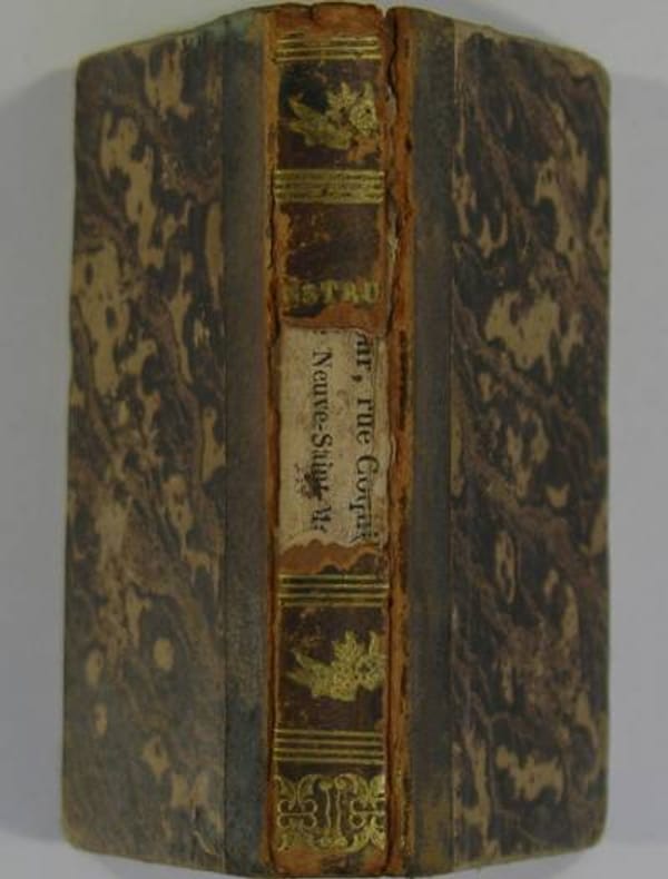 A Metz, chez Verronnais, 1832 et 1842. 2 volumes en un in/18 reliure demi-basane, dos lisse, 126 p., & 120 pages. Manque sur le dos. Marges un peu courtes (texte “rogné” en vol. 1 ; quelques notes du temps sur petits papiers collés.