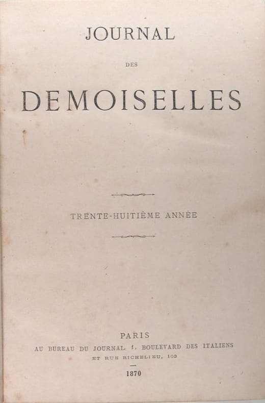 Journal des Demoiselles, Revue Mode Journal, Paris, 1870/71. In/4 reliure demi-basane marine, dos à filets et titres dorés, 17 gravures couleurs.