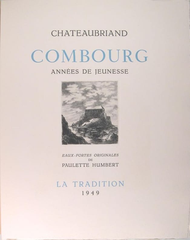 1949 [Paris, Bourg La Reine]: La Tradition, 1949. En feuilles, sous chemise et étui: 26.5 x 33 cm, 147-[4] pp. Edition illustrée de 22 eaux-fortes originales de Paulette Humbert. Triage limité à 505 exemplaires. Celui-ci, un des 20 exemplaires sur vélin de Lana destinés à l'artiste et aux collaborateurs (no. V: exemplaire d'artiste / Paulette Humbert). Chemise cartonnée recouverte de papier écru. Etui assorti. Excellent état pour ce premier volet, illustré, des Mémoires d'Outre Tombe.
