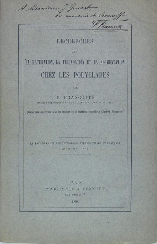 Extrait des archives de zoologie expérimentale et générale année 1898 N°2.