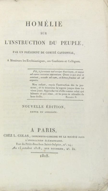 A Paris, chez Colas, imprimeur-libraire, 1818. In/8 broché en couverture d’attente, 47 pages., nouvelle édition revue et corrigée.