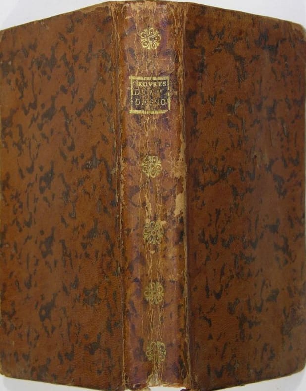 A Londres, s.n., 1780. In/12 reliure plein veau tacheté du temps, dos lisse à felurons dorés et pièce de titre, xij f., 108 p. & 107 p. Coiffe inférieure manquante, coins amortis et usés. Auréole claire sur la partie centrale de l'ouvrage sur la moitié des feuillets.