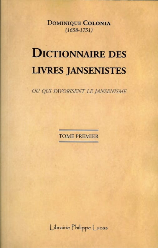 Reprint de l'édition de 1752 (Anvers) chez Jean Baptiste Verdussen, édition la plus complète augmentée par Patouillet. D. Colonia (1660-1741) éminent jésuite, professeur au Collège de la Trinité de Lyon, est l’auteur d’une imposante oeuvre, autant par le nombre des publications que la variété des sujets étudiés.Son dictionnaire des livres Jansénistes offre aux disciples de Saint-Ignace un outil efficace dans leurs controverses avec les amis de Port-Royal. On lui doit également une Histoire littéraire de la ville de Lyon, Antiquitez profanes et sacrées de la ville de Lyon (1701), Antiquités profanes et sacrées de la ville de Lyon...