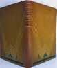 A Paris, chez André Coq, 1926.,195 pages. In/4 reliure (signée S. Kissel) plein maroquin havane marquetée sur les plats avec filets et titre doré, 3 très larges nerfs sur le dos avec filets et titres dorés, doré sur tête, gardes de moire noire, couvertures et dos conservés, illustrations : bois originaux de Deslignières. Plats s'écartant légèrement du corps de l'ouvrage.