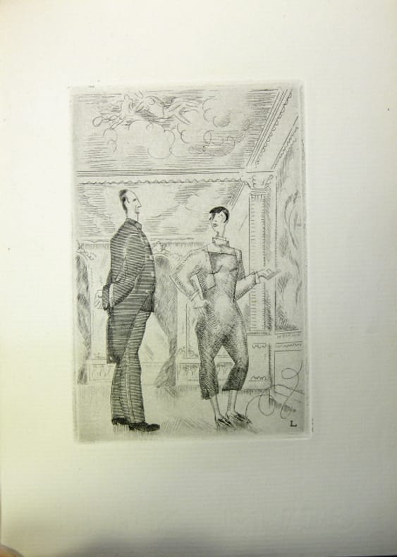 Jean Émile Laboureur, 1877, 1943, peintre, dessinateur, graveur, aquafortiste, lithographe et illustrateur français. Laboureur est l'auteur de nombreuses gravures au burin, en planches individuelles ou pour des livres illustrés. Il illustre ainsi près de quatre-vingts livres, souvent d'auteurs contemporains comme Maurois, Giraudoux, Colette, Gide, P.-J. Toulet, Maeterlinck, Mauriac. Il peint des tableaux de genre, des paysages animés ou non, des natures mortes. Il réalise aussi quelques fresques et des sculptures. Ses œuvres sont exposées dans plusieurs musées nationaux et provinciaux.