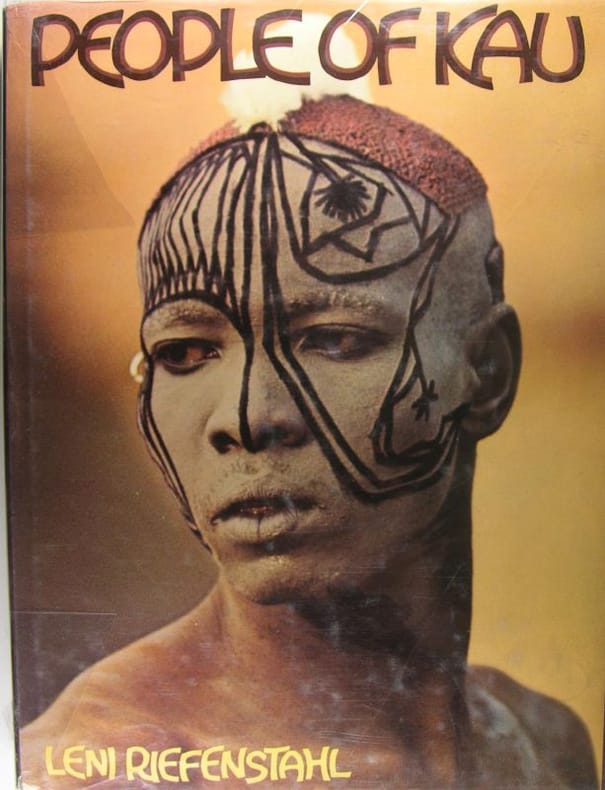 Petit défaut en jaquette sur le dos. Travail sur les Nouba de Kau, de Leni Riefenstahl, à la personnalité controversée - cinéaste photographe - qui fut propagandiste de l’hitlérisme dans les années 30.