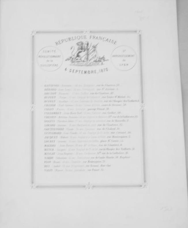Feuille contrecollée sur carton - 30 x 21 cm - vignette représenant un lyon tenant les symboles révolutionnaire à côté d'un drapeau portant l'inscription "Vaincre ou mourir".