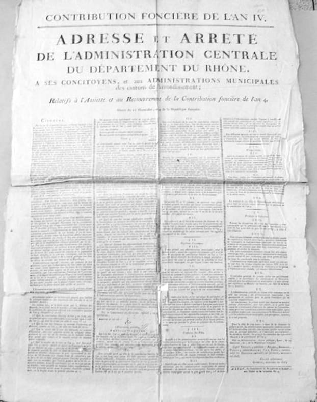 Lyon, imprimerie Ballanche et Barret, an 4 (1796). Affiche 86 x 60 cm.