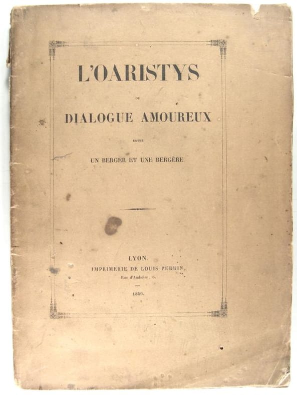 Lyon, Imprimerie Louis Perrin, 1846 ; in-8, broché ; 52 pp., 1 gravure en frontispice, couverture beige ornée.