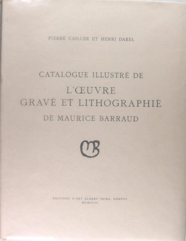 6. Genève, Éditions d'Art, 1944, small in-4°, (14)nn pp + 254 leaves describing 254 engravings or lithographs + (1)(index), printed 1065 copies, sewn, original stiff wrapper. The oeuvre catalogue of the graphic work of the Swiss artist Maurice Barraud (Genève 1889-1954).