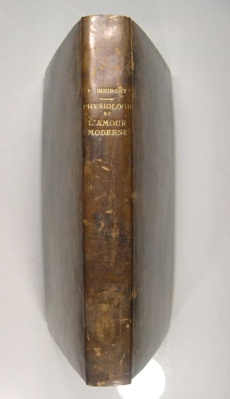 Cet essai de Paul Bourget est dédié "A mon cher éditeur et ami Alphonse Lemerre, je dédie ces pages, qui font suite à Mensonges, comme un témoignage d'une déjà vieille affection. P.B. Rapallo, ce 8 octobre 1890." (dédicace imprimée placée sur le feuillet suivant le feuillet de titre). Claude Larcher était un personnage déjà présent dans le roman précédent de Paul Bourget, Mensonges(1887). Hofmannsthal a largement étudié la Physiologie de l'amour moderne de Paul Bourget et notamment le personnage-écrivain fictif inventé par ce dernier : Claude Larcher. Paul Bourget décrit Claude Larcher :"Comme beaucoup d’écrivains d’analyse, il [Claude Larcher] était habitué à s’étudier et à se juger sans cesse, étude et jugement qui n’avaient d’ailleurs aucune influence sur ses actions. Les plus menus détails lui servaient de prétextes à des retours sur lui-même et sur sa destinée, mais le seul résultat de ce dédoublement continuel était de l’entretenir dans une lucidité inefficace et douloureuse de tous les instants."(Mensonges, p. 4-5). « Il flotte un parfum si aristocratique de cercle et de mirliton, de bookmakers et de marquises dans ce livre », dit Hofmannsthal à propos de La Physiologie de l’amour moderne. Dans cet essai, sous titré Méditations de philosophie parisienne sur les rapports des sexes entre civilisés dans les années de grâce 188- , Paul Bourget expose sa théorie de l'amour moderne. C'est l'œuvre d'analyse du « premier » Bourget, écrite par un véritable physiologiste littéraire à prétention de physiologie scientifique et « qui a pour but d'arriver à la découverte de la loi générale dans le plus individuel des sujets ». Cette histoire de la maladie d'amour en évoque tous les aspects : l'amant, la maîtresse, le flirt, la naissance de la jalousie, la colère, la vengeance, la rupture et les remèdes à l'amour. L'auteur aborde ce sujet au travers d'anecdotes, introduisant une foule de personnages et parfois se mettant en scène. Dans cet « ouvrage grouillant de vie », nous découvrons un étalage chirurgical à propos des plus vulgaires sensations, l'ensemble des phénomènes cérébraux qui constituent l'instinct sexuel. En décrivant sur un ton de persiflage la femme, proie naturelle des désirs masculins, Paul Bourget (il a trente sept ans et vient de clôturer sa liaison parfois ombrageuse avec Marie Kann, qu'il a fini par détester) nous livre en fait toutes les découvertes qu'il a faites depuis dix ans sur la passion qui domine dans ce monde. Cette enquête sur les mœurs galantes des Parisiens dans les années 1880 apparut parfois comme une intention de libertinage et l'essayiste dut en adoucir plusieurs passages. Le « premier » Paul Bourget, celui d'avant sa conversion au catholicisme, est moraliste, un analyste des désordres du cœur ; faisant preuve d'un certain relativisme, il accorde moins d'importance aux mœurs qu'à la psychologie et considère ses romans comme « de simples planches d'anatomie morale » Il accuse en effet une vision souvent pessimiste de la société. Pour Edouard Rod, son contemporain, Paul Bourget apparaît comme « un désabusé, sceptique, pessimiste, indifférent, aristocrate, bien décidé à s'isoler du troupeau vulgaire, curieux de joies et de douleurs plus rares que celles du commun, prêt à aller chercher une consolation au mal de vivre dans d'égoïstes jouissances artistiques » Bourget recherche en effet le style analytique, la précision de l'observation minutieuse et se réfère à la science médicale et anatomique de l'époque. Il s'oppose pourtant au naturalisme. Il définit en effet le moraliste comme étant « l'écrivain qui montre la vie telle qu'elle est » et cette prise de position littéraire est soutenue par une volonté de connaissance psychologique. Dans Mensonges, il dresse ainsi le tableau complet d'une société, avec ses ramifications, y compris ses lisières douteuses. Il ajoute : « Ce que Claude Bernard faisait avec ses chiens, ce que Pasteur fait avec ses lapins, nous devons le faire, nous, avec notre cœur, et lui injecter tous les virus de l'âme humaine. Nous devons avoir éprouvé, ne fût-ce qu'une heure, les mille émotions dont peut vibrer l'homme, notre semblable » Il écrit par ailleurs dans la préface de Physiologie de l'amour moderne : « Interdire à l'artiste la franchise du pinceau sous le prétexte que des lecteurs dépravés ne voudront voir de son œuvre que les parties qui conviennent à leur fantaisie sensuelle, c'est lui interdire la sincérité, qui est, elle aussi, une vertu puissante d'un livre […] Imaginons-nous un lecteur de vingt-cinq ans et sincère, que pensera-t-il de notre livre en le fermant ? S'il doit, après la dernière page, réfléchir aux questions de la vie morale avec plus de sérieux, le livre est moral. C'est aux pères, aux mères et aux maris d'en défendre la lecture aux jeunes garçons et aux jeunes femmes, pour qui un ouvrage de médecine pourrait être dangereux, lui aussi. Ce danger-là ne nous regarde plus. Nous n'avons, nous, qu'à penser juste si nous pouvons et à dire ce que nous pensons. Pour ma part, je m'en tiens à ce mot que me disait un saint prêtre : — « Il ne faut pas faire de mal aux âmes, et je suis sûr que la vérité ne leur en fait jamais […] ». Il ajoute : « la peinture de la passion offre toujours ce danger d'exercer une propagande. Rendre l'artiste responsable de cette propagande, c'est faire le procès non seulement à tel ou tel livre, mais à toute la littérature ».(Source documentée et bibliographie Wikipedia, article Paul Bourget). Le second Paul Bourget (antidreyfusard, militariste et ami de Maurras, antisémite prosélyte, etc.) a éclipsé le premier pour n'en faire plus qu'un auteur de second rang répudié et dédaigné. Ses premiers romans et ces premiers essais, telle cette Physiologie de l'amour moderne, méritent à eux seuls d'être redé