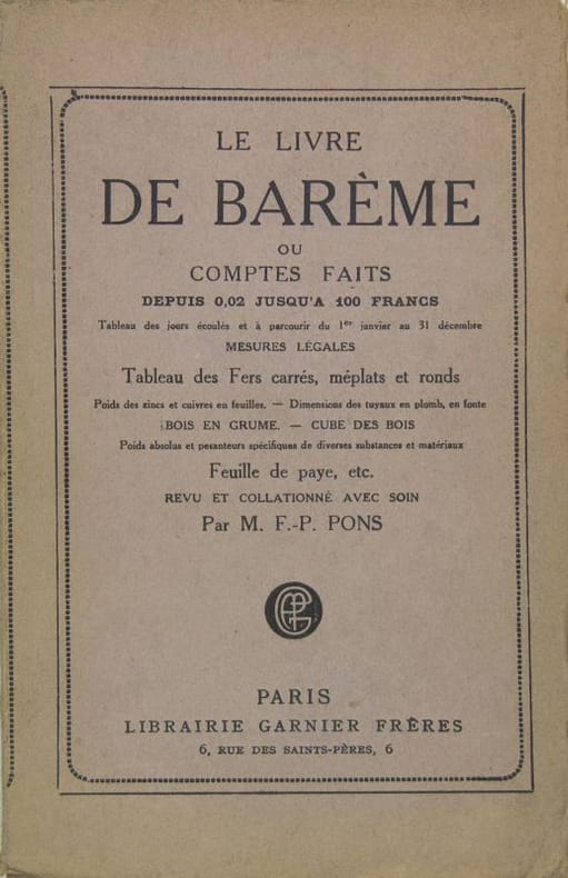 Tableau des jours écoulés et à parcourir du 1er janvier au 31 décembre, Mesures légales, tableau des fers carrés, méplats et ronds, poids des zincs et cuivres en feuilles, dimensions des tuyaux en plomb, en fonte, bois en grume, cube des bois, poids absolus et pesanteurs spécifiques de diverses substances et matériaux, feuille de paye, etc. Fermeture de la Librairie du 30/12/2025 au 11/01/2026