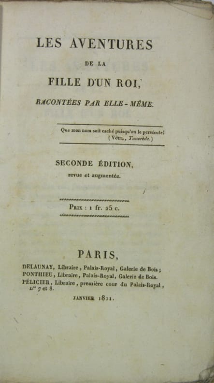 Il s'agit de l'histoire sous forme allégorique de la Charte octroyée par Louis XVIII. QUERARD X, 66.Jean Vatout (1791-1848) littérateur et poète, fut bibliothécaire du duc d’Orléans (plus tard Louis-Philippe), député de 1831 à 1840, élu à l'Académie en 1848, il mourrut dans l'année, en Angleterre où il avait suivi Louis Philippe dans son exil. Fermeture de la Librairie du 30/12/2025 au 11/01/2026