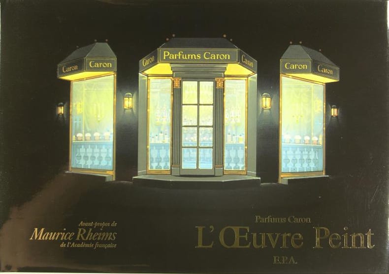 Un album où sont présentés les flacons de parfums anciens et récents, de collection, inconnus ou même disparus, fards et poudres célèbres, en planches de gouaches signées Michel Dubré, Hideki Yoshida. In-fine, la chronologie des parfums Caron de 1904 à 1986. Fermeture de la Librairie du 30/12/2025 au 11/01/2026
