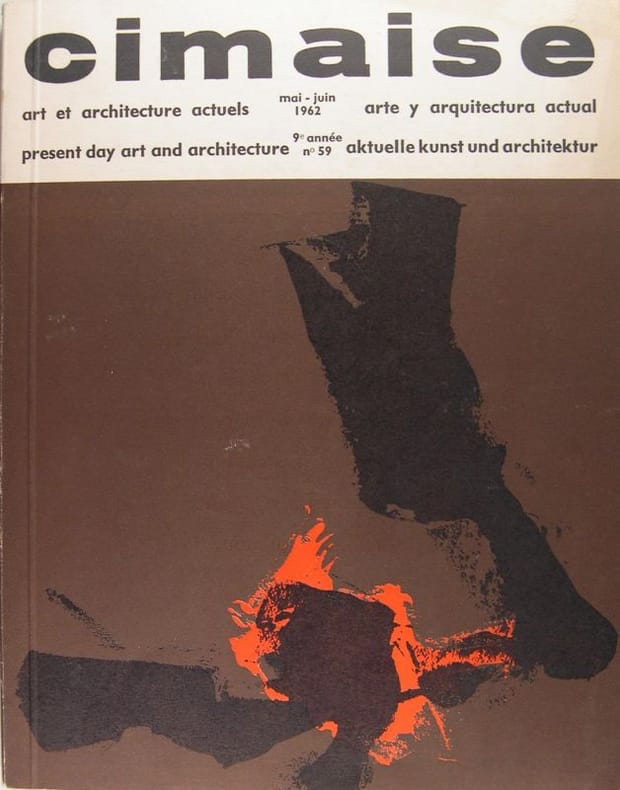 Alberto Burri, le groupe Cobra, l'objet, Claude Georges, Frederic Benrath, Jacob Bakema. Textes en français, anglais, allemand et espagnol.