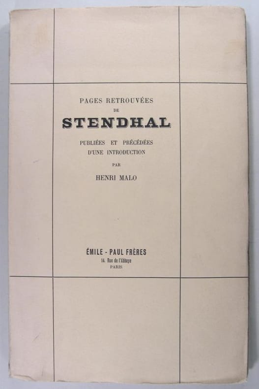 PAGES RETROUVEES DE STENDHAL publiées et précédées d'une introduction par Henri Malo édition Emile-Paul Frères 1929 tirage à 925 exemplaires un des 900 sur Lafuma ENVOI AUTOGRAPHE SIGNE DE HENRI MALO à André BELLESORT Broché, très bon état