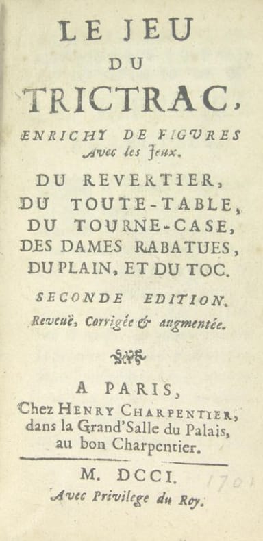 Academie des jeux - Tome II - A Paris, chez Théodore Legras. 370 pages. De l'imprimerie de Joseph Bullot, 1743. Reliure solide - quelques manques sur la couverture et en haut et bas du dos - Mors jolis - Intérieur frais.