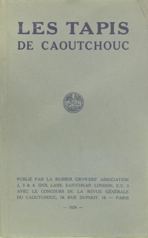 Plaisante publication illustrée détaillant : la fabrication de revêtements de planchers en caoutchouc, les divers types de revêtements de planchers en caoutchouc, les planchers ou surfaces de pose, adhésifs, la pose des revêtements en caoutchouc, les possibilités d'adaptation des revêtements de planchers en caoutchouc, les revêtements de planches en caoutchouc sur les navires, rapport d'un architecte indépentant sur quelques exemples londoniens (hôpitaux, pensionnats, ...).