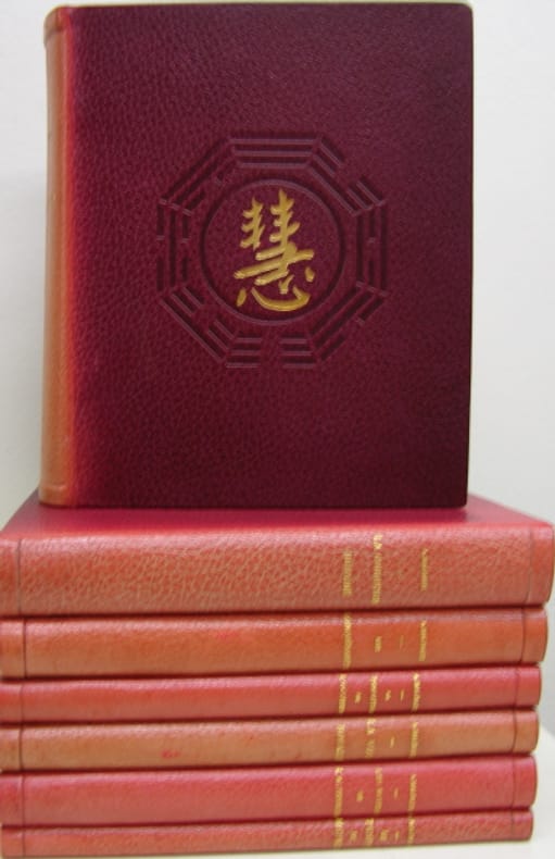 Editions Lidis Editions Lidis, Imprimerie Nationale, 1960 - 1962. 7 volumes In-4 reliés plein-maroquin rouge à gros grains, dos à nerfs en coiffe et en queue, plats ornés d'un motif diagramme doré dans un encadrement estampé à froid, têtes dorées. 160 + 295 + 205 + 465 + 121 + 76 + 178 pages. Gardes de papier décorées différement à chaque volume en rapport avec le texte. Illustrées de lithographies originales en couleurs de Walter Spitzer. Exemplaire numéroté 885 sur vélin d'Arches pur chiffon filigrané André Malraux. Reliure signée de B. Roullet, relieur à Paris. Bien complet de la plaquette brochée "Journal d'une fabrication", réservée aux souscripteurs, 30 pages. Bel état.