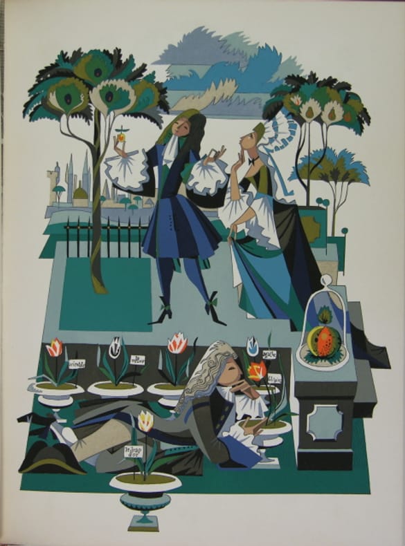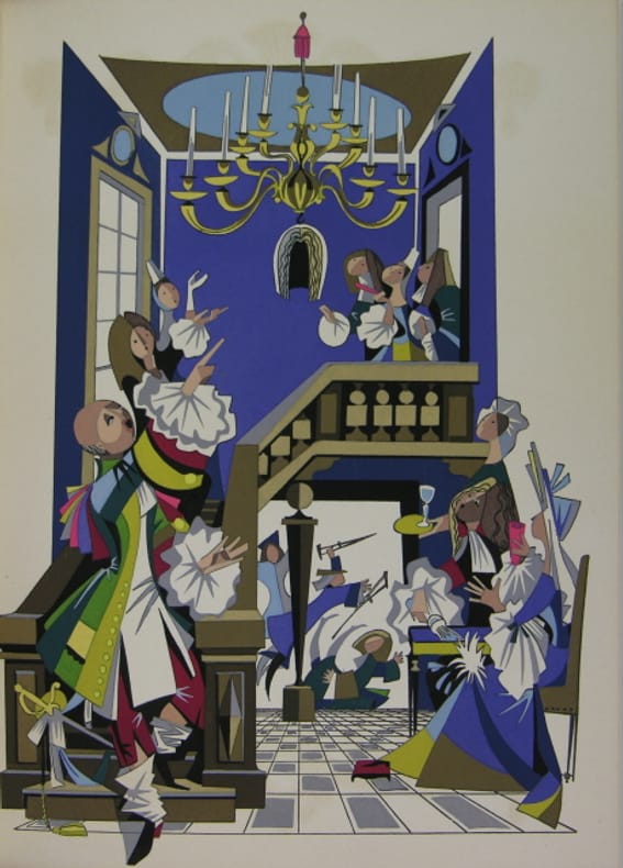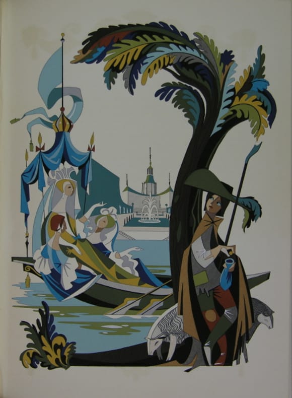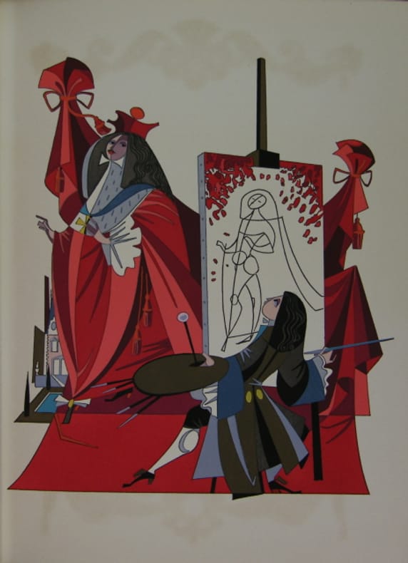 Cercle des Apothicaires Bibliophiles, 1964. 2 volumes in/4 (25 x 20 cm) reliure plein maroquin bordeaux sous étuis cartonnés bordés de maroquin, dos à décor doré, plats à triple filets et décor dorés, dorés sur têtes, illustrations : 33 belles gouaches de Jacques Ravel, mises en couleurs par les ateliers de l'Ibis, Paris, pages de texte ornées. Le présent exemplaire est enrichi d'un envoi de J. Ravel.