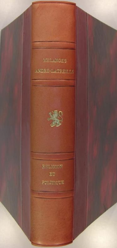 Audin, Lyon, 1972. Fort volume in-8 (23 x 16 cm) reliure demi-basane rouge, dos à nerfs à fleuron et titres dorés, couverture conservée, 624 pages. (Préface de M.Pacaut, J.Gadille, J. M. Mayeur et H. Beuve-Mery). Mélange offert à M. Le doyen André Latreille.